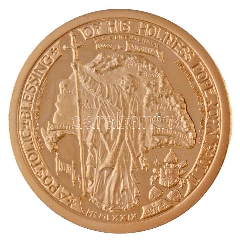 1979. "Szent László király / Őszentsége II. János Pál pápa apostoli áldása" a Kováts Mihály Egyesület által az amerikai függetlenségi háború 200. évfordulójára Amerikában kiadott aranyozott bronz emlékérem sorozat darabja (51mm) T:PP