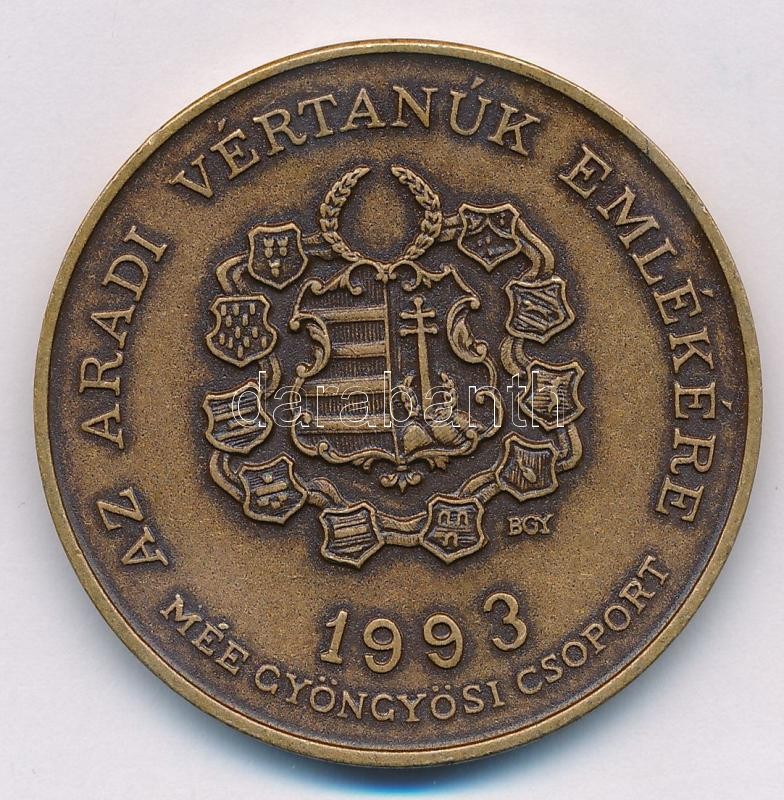 Leírás: Bognár György (1944-) 1993. "MÉE Gyöngyösi Csoport - Aradi Vértanúk / Aulich Lajos" Br emlékérem (42,5mm) T:1 GS12