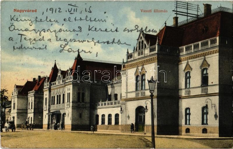 1912 Nagyvárad, Oradea; vasútállomás. Bettelheim Miksa és Társa kiadás... https://www.darabanth.com/hu/369-Gyorsarveres/369.0/Kepeslapok/Erdely~1500005/1912-Nagyvarad-Oradea-vasutallomas-Bettelheim-Miksa-es-Tarsa-kiadasa-Bahnhof-railway-s~II2149657