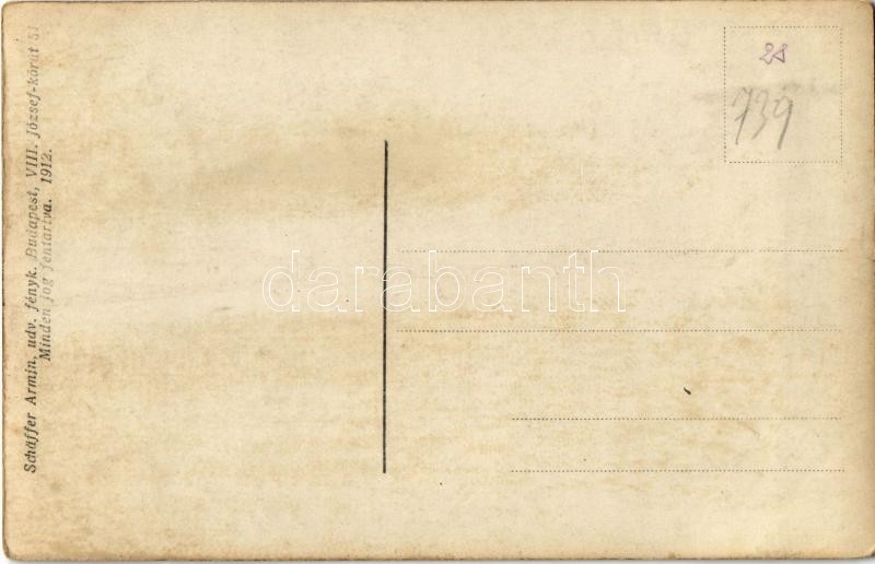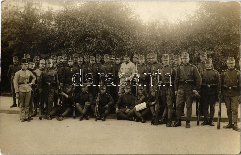Leírás: Osztrák-magyar katonák a Nap újsággal. Schäffer Armin felvétele / Austro-Hungarian (k..u.k.) military group photo, soldiers with newspaper. photo