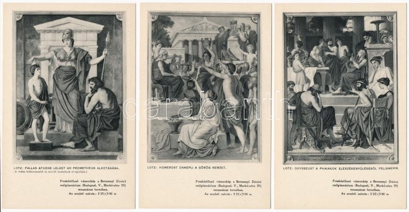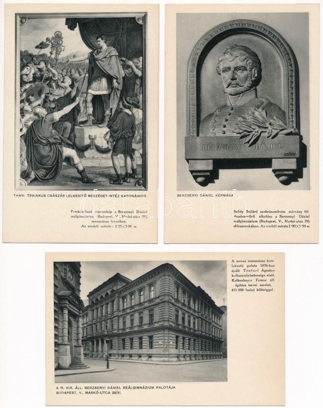 Budapest V. Berzsenyi Dániel Reálgimnázium. Kiadta az intézet fennállásának 75-ik évfordulójára, Lotz és Than festmények - képeslapsorozat 9 db régi képeslappal / postcard series with 9 old postcards