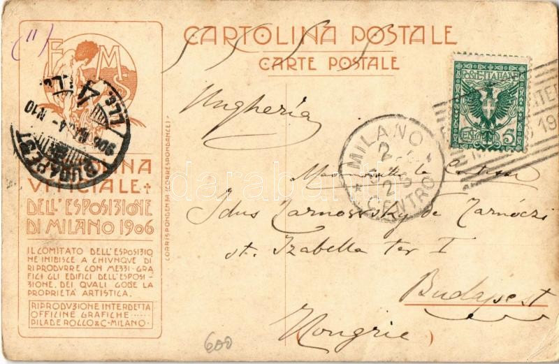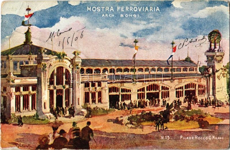 1906 Milano, Esposizione internazionale di Milano, Mostra Ferroviaria arch. Bongi / Milan International Exposition, world's fair advertising art postcard. artist signed (EK)
