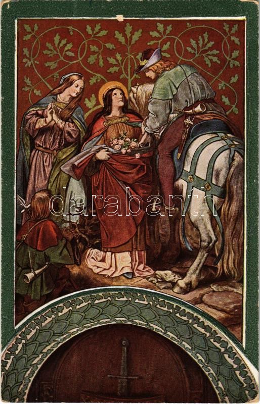 Der hl. Ludwig findet die Brote unter St. Elisabeths Mantel in Rosen verwandelt. Wartburg, Elisabeth-Galerie. Serie II. 20. / Árpád-házi Szent Erzsébet / St. Elizabeth of Hungary s: M. v. Schwind