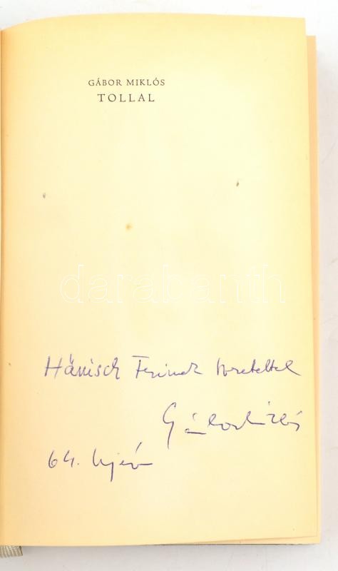 Gábor Miklós: Tollal. Naplójegyzetek A szerző által dedikált!. Bp.,196... https://www.darabanth.com/hu/369-Gyorsarveres/369.0/Konyvek/Konyvek-Egyeb-ritkasagok~1000017/Gabor-Miklos-Tollal-Naplojegyzetek-A-szerzo-altal-dedikalt-Bp-1963-Szepirodalmi-Kiado~II2148052