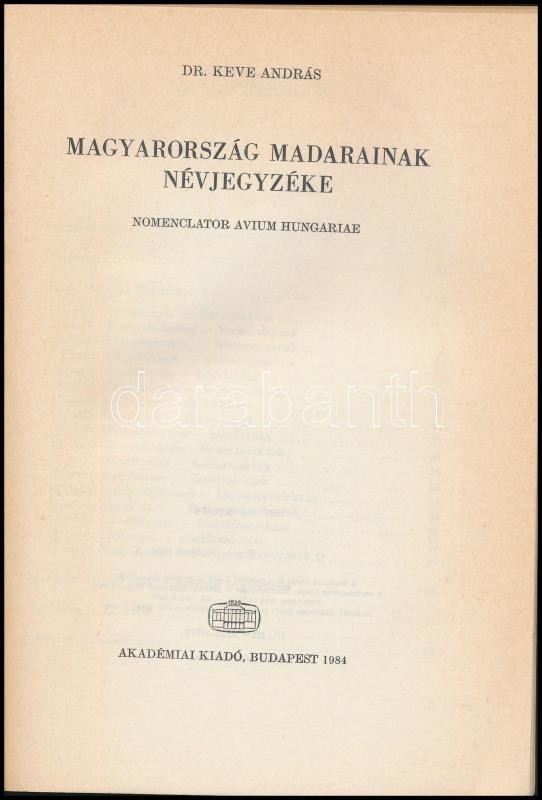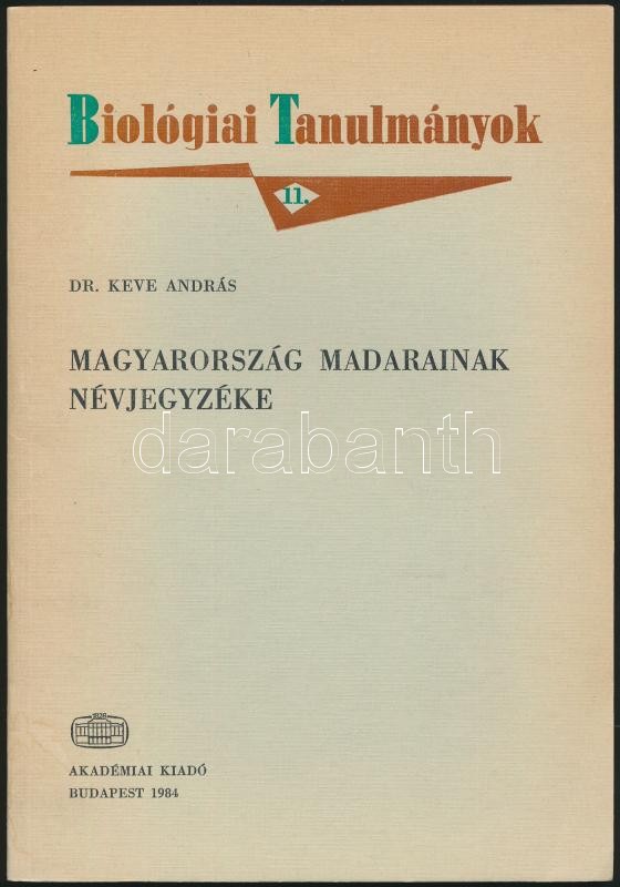 Dr. Keve András: Magyarország madarainak névjegyzéke. Biológiai tanulm... https://www.darabanth.com/hu/369-Gyorsarveres/369.0/Konyvek/Konyvek-Termeszettudomany-medicina~1000009/Dr-Keve-Andras-Magyarorszag-madarainak-nevjegyzeke-Biologiai-tanulmanyok-11-Bp-1984-Ak~II2119474