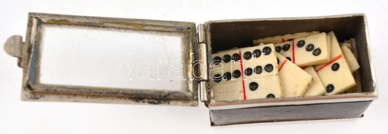 26 db régi mini csont dominó, kis bőr borítású fém dobozban, 0,8x1,5 c... https://www.darabanth.com/hu/369-Gyorsarveres/369.0/Mutargy-papirregiseg-egyeb/Bolhapiac~500011/26-db-regi-mini-csont-domino-kis-bor-boritasu-fem-dobozban-0-8x1-5-cm-doboz-4x2x2-cm~II2146916