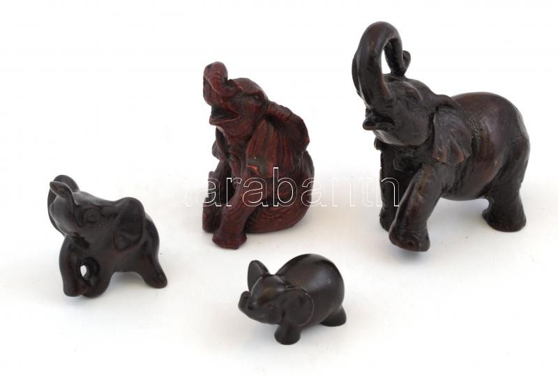 Leírás: Elefánt figurák, 4 db, műgyanta, m: 2-7 cm