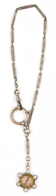 Leírás: Mini iránytű, fém testtel, fém láncon, 2x2,5 cm, h: 32 cm