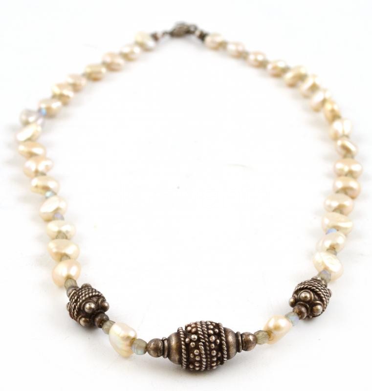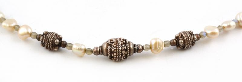 Leírás: Tenyésztett gyöngy nyaklánc, ezüst(Ag) elemekkel, h: 38 cm