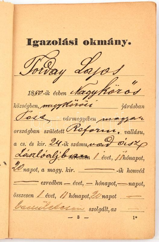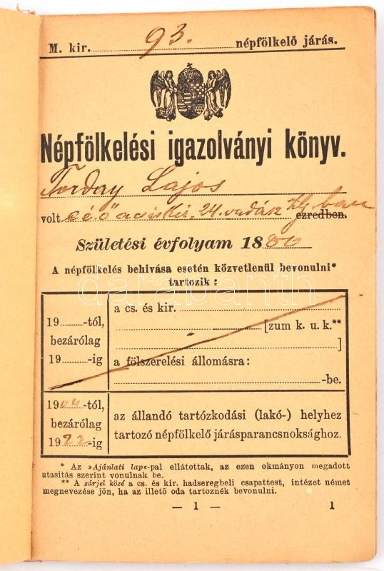 Leírás: 1898 Budapest, népfölkelési igazolványi könyv
