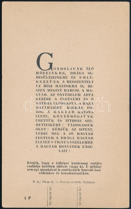 1942 karácsonya harcoló honvédeinké és hozzátartozóiké - emléklap, Boz... https://www.darabanth.com/hu/369-Gyorsarveres/369.0/Mutargy-papirregiseg-egyeb/Militaria~500026/1942-karacsonya-harcolo-honvedeinke-es-hozzatartozoike-emleklap-Bozo-Gyula-grafikaja~II2111895
