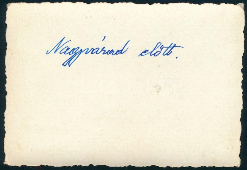 Leírás: cca 1940 Nagyvárad előtt, kerékpáros katonai alakulat, feliratozott vintage fotó, Badár Balázs mezőtúri fazekas családi fotógyűjteményéből, 6x8,5 cm