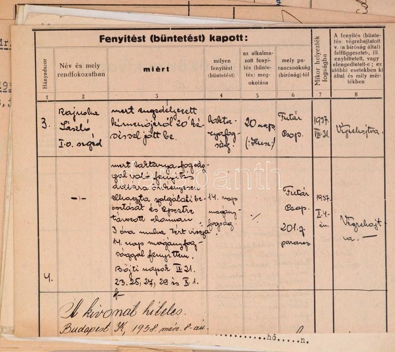 cca 1945 Rajhona László szolgálati iratai, nagyrészt háború előttiek. Számos érdekes Légügyi Hivatali és repülős alakulati szervezeti bélyegzővel ellátottak. Repülőtéri Csendőrkülönítmény, Repülő Futár alcsoport.