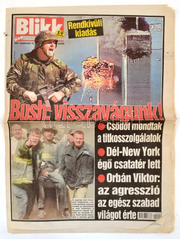 2001. szeptember 12. Blikk különkiadás, benne a szeptember 11-diki ter... https://www.darabanth.com/hu/369-Gyorsarveres/369.0/Mutargy-papirregiseg-egyeb/Nyomtatvanyok~500028/2001-szeptember-12-Blikk-kulonkiadas-benne-a-szeptember-11-diki-terrortamadas~II2145707