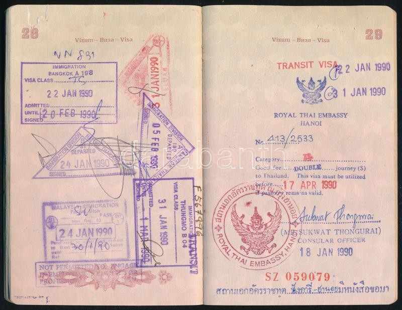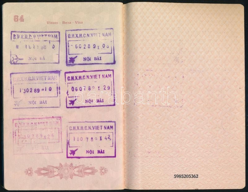 1988 Magyar Népköztársaság által kiállított fényképes útlevél, vietnám... https://www.darabanth.com/hu/369-Gyorsarveres/369.0/Mutargy-papirregiseg-egyeb/Okmanyok~500016/1988-Magyar-Nepkoztarsasag-altal-kiallitott-fenykepes-utlevel-vietnami-es-egyeb-pecsC3~II2146461