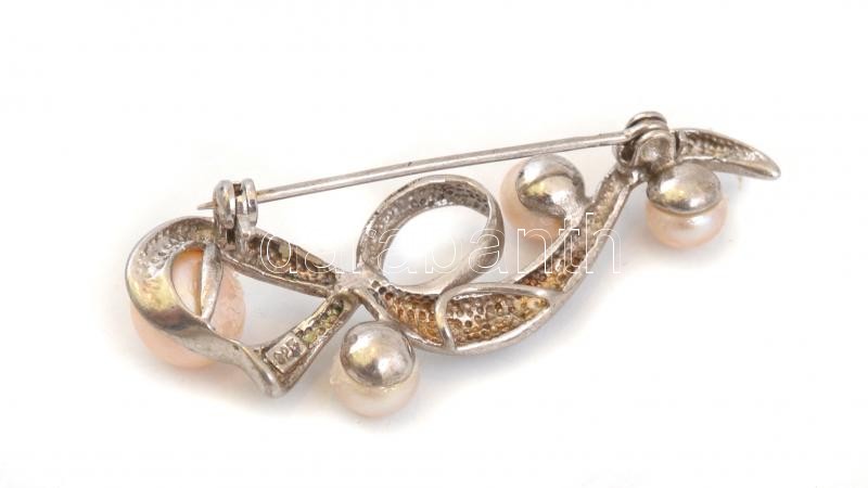Leírás: Ezüst (Ag) bross gyönggyel Jelzett. 4,93 g