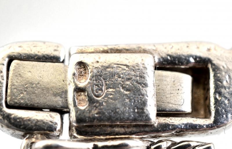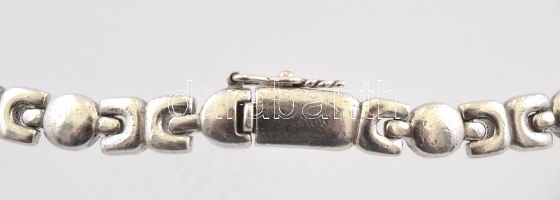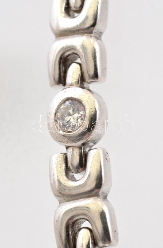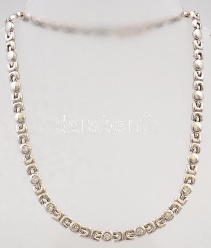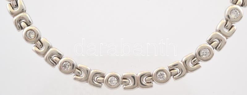 Leírás: Ezüst (Ag) masszív nyaklánc, cirkón díszítéssel. Jelzett. 20 cm, 52,6 g
