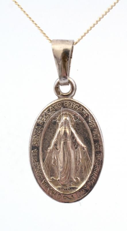 Leírás: Ezüst (Ag) nyaklánc Mária medállal. Jelzett. 3,23 g