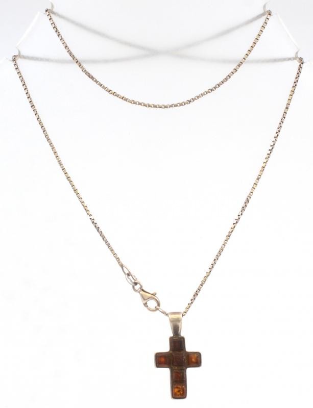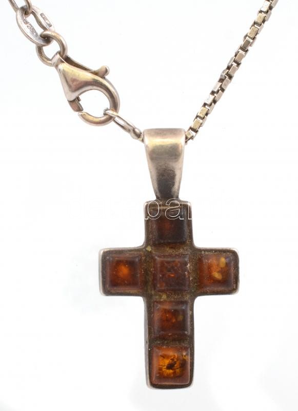 Leírás: Ezüst (Ag) nyaklánc borostyános feszülettel 5,52 g