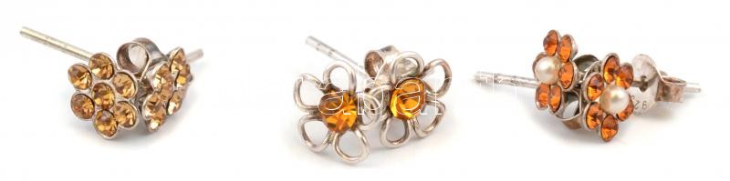 Leírás: Ezüst(Ag) 3 pár apró köves fülbevalópár, jelzett, bruttó: 1,4 g
