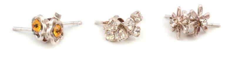 Leírás: Ezüst(Ag) 3 pár kövekkel díszített apró fülbevaló, jelzett, bruttó: 1,4 g