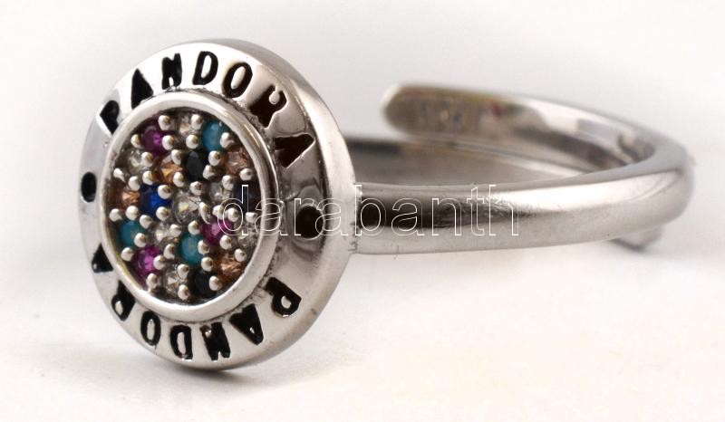 Leírás: Ezüst(Ag) apró kövekkel díszített, állítható gyűrű, Pandora jelzéssel, bruttó: 3,5 g
