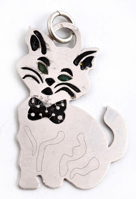 Leírás: Ezüst(Ag) cica medál, zománc díszítéssel, jelzett, 3,2×2 cm, bruttó: 2,1 g
