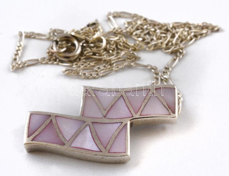 Leírás: Ezüst(Ag) figaro nyaklánc, gyöngyház díszítésű medállal, jelzett, h: 44 cm, 2,7×1,8 cm, bruttó: 7 g