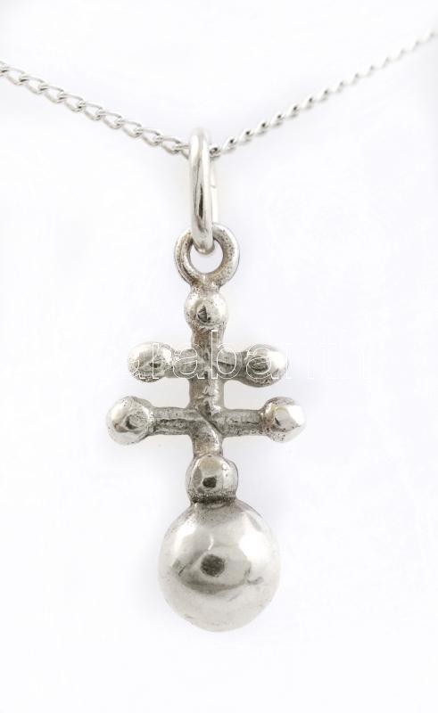 Leírás: Ezüst(Ag) lánc, apró medállal, h: 38 cm, 1,5×0,8 cm, nettó: 1,4 g
