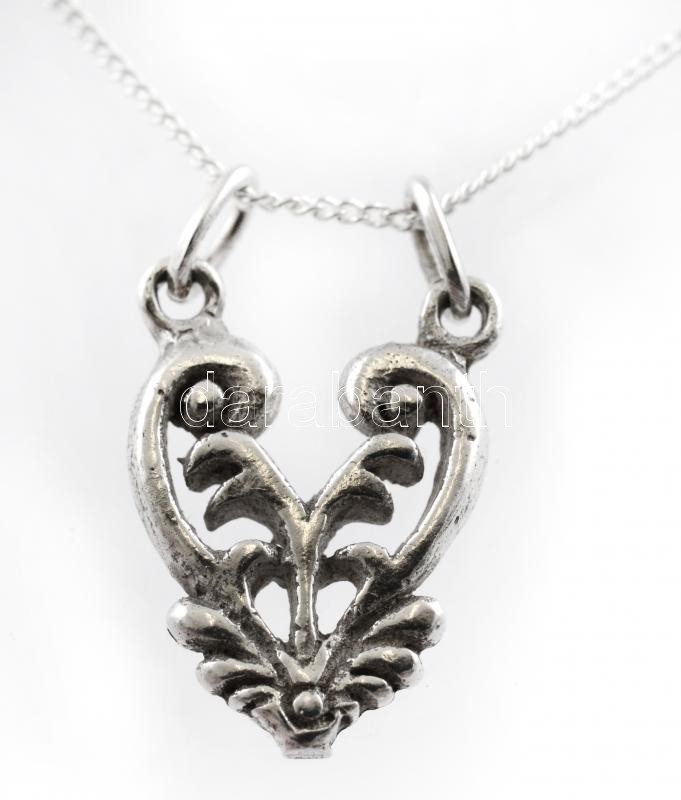 Leírás: Ezüst(Ag) lánc, medállal, h: 38 cm, 1,6×1,3 cm, nettó: 2,5 g