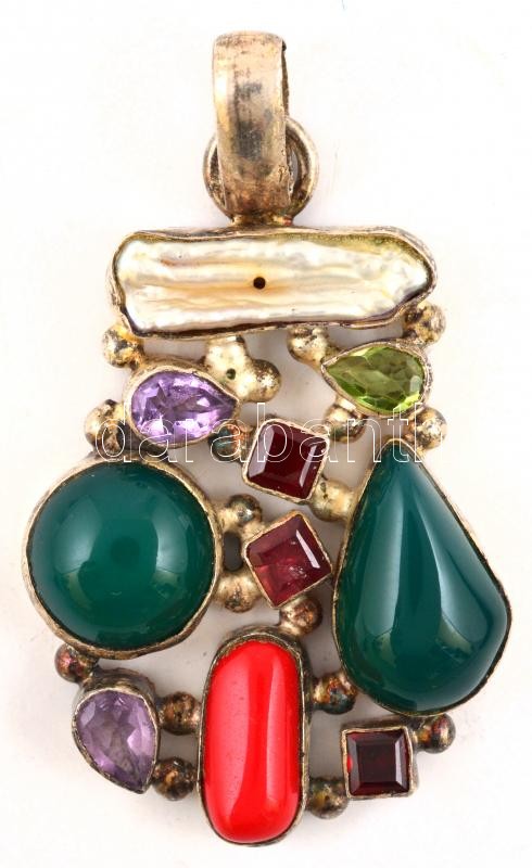 Leírás: Ezüst(Ag) medál féldrágakövekkel, jelzett, 5×2,5 cm, bruttó: 16,2 g