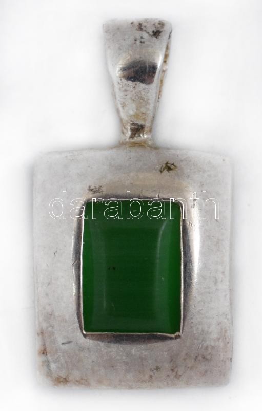 Leírás: Ezüst(Ag) medál, zöld kővel, jelzett, 2×1,2 cm, bruttó: 2,3 g