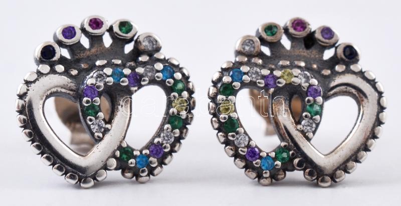 Leírás: Ezüst(Ag) szívecskés fülbevalópár, jelzett, 1,2×1,2 cm, bruttó: 1,8 g