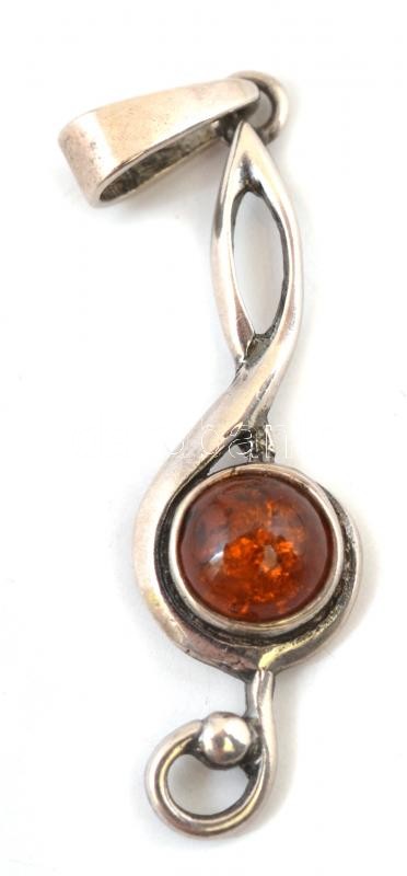 Leírás: Ezüst(Ag) violinkulcsos medál, borostyánnal, jelzett, h: 3,5 cm, bruttó: 1,3 g