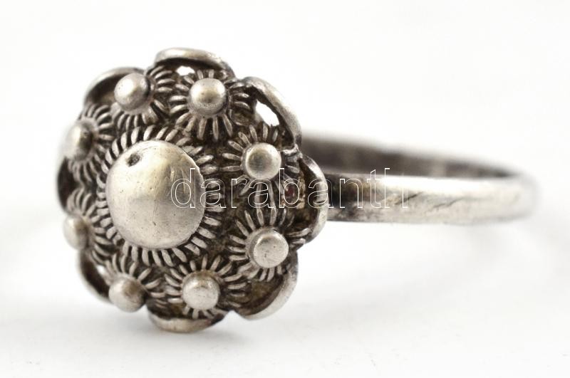 Ezüst(Ag) virágos gyűrű, jelzés nélkül, méret: 52, nettó: 1,3 g https://www.darabanth.com/hu/369-Gyorsarveres/369.0/Nemesfem-Disztargyak-Orak-es-Ekszerek/Nemesfem-Disztargyak-Orak-es-Ekszerek~2000021/EzustAg-viragos-gyuru-jelzes-nelkul-meret-52-netto-1-3-g~II2148206