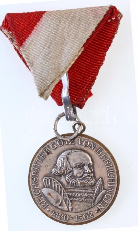 Leírás: NSZK/NDK ~1970-1980. "Götzt von Berlichingen 1481-1562" ezüstözött Br emlékérem szalagon (32mm) T:2-