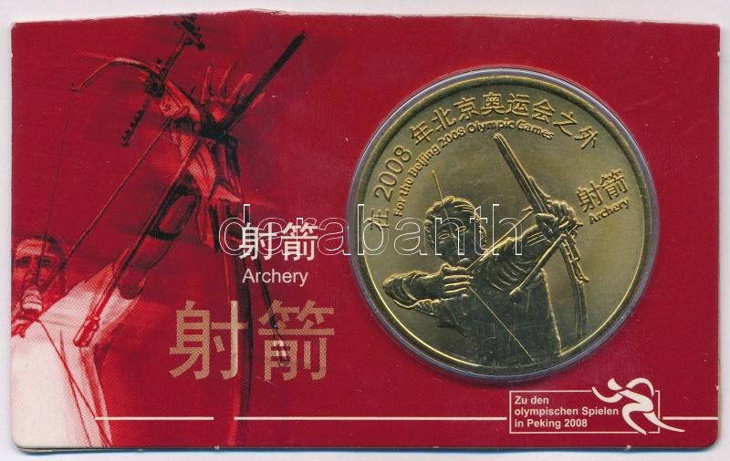 Leírás: Kína 2008. 10Y Cu-Zn-Br "Pekingi Olimpia Íjászat" kivágott díszlapon T:PP