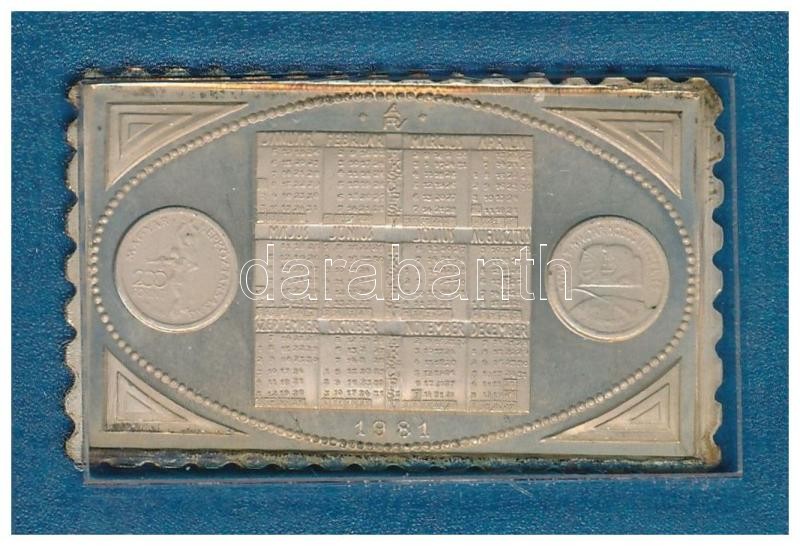 Leírás: 1981. "Naptár" Ag bélyegérem "Állami pénzverő" feliratú műanyag tokban (0.835/37x23mm) T:2 (PP) patina
