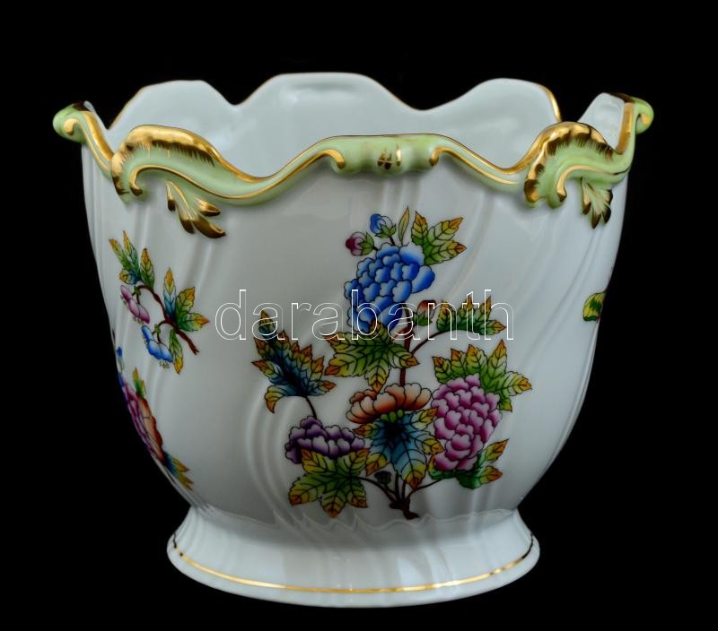 Leírás: Herendi Viktória mintás kaspó. Kézzel festett, jelzett, hibátlan d:19,5 cm, m: 15,5 cm