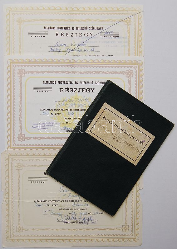 3db üzletrészjegy+érdekeltségi könyvecske https://www.darabanth.com/hu/37-Gyorsarveres/37.0/Festmeny-mutargy-papirregiseg-egyeb/Nyomtatvany~28/3db-uzletreszjegypluserdekeltsegi-konyvecske~II72750