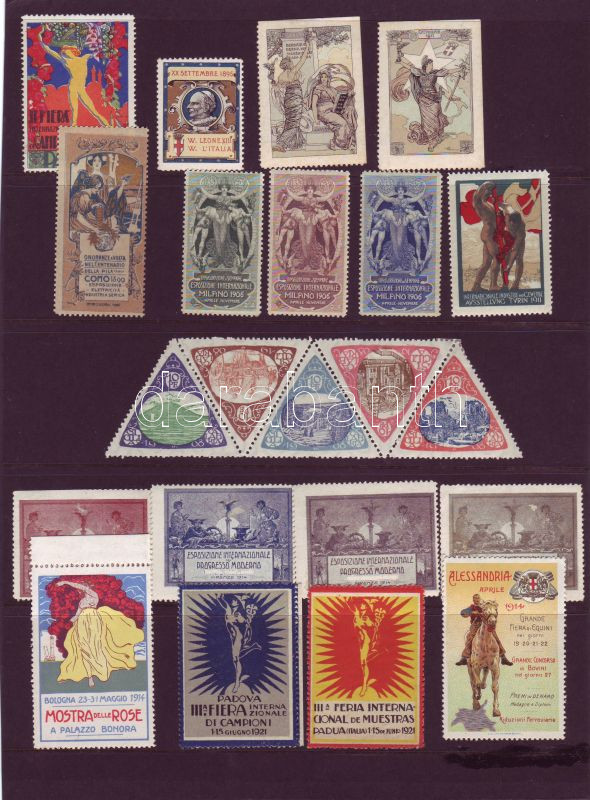 1895-1921 22db díszes olasz kiállítás levélzáró https://www.darabanth.com/hu/37-Gyorsarveres/37.0/Festmeny-mutargy-papirregiseg-egyeb/Parafilatelia~19/1895-1921-22db-diszes-olasz-kiallitas-levelzaro~II72664