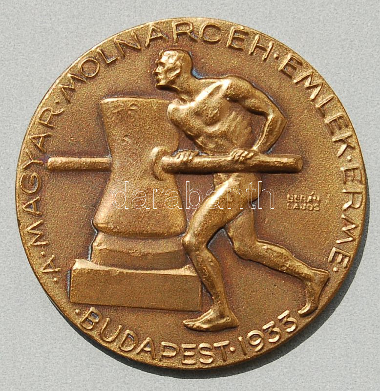 Leírás: 1933. "...Molnár Céh" Br. emlékérem. Szign:Berán Lajos T:2