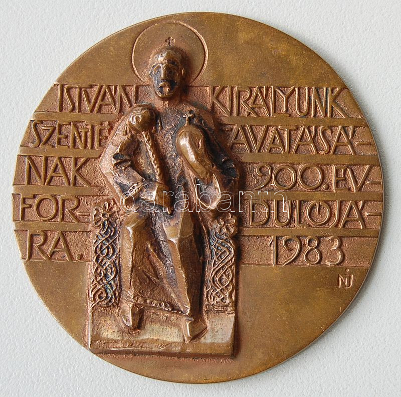 Leírás: 1983. Extrém nagyalakú zsűrizett "Szt. István" Br plakett, igen kis példányszámban szignált: N.J. T:2