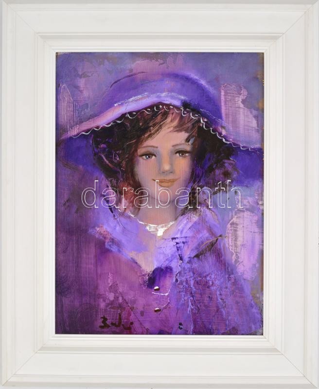 Leírás: Budai László (1965): Merengő. Olaj, farost, jelzett, keretben, hátoldalán címkével, 40×30 cm