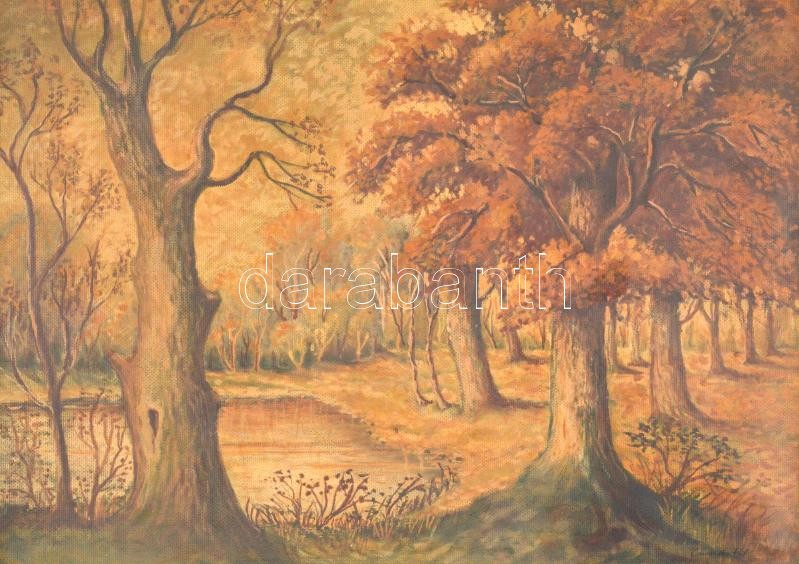 Leírás: Csergezán jelzéssel: Őszi erdő. Olaj, karton, sérült keretben, 50x70 cm