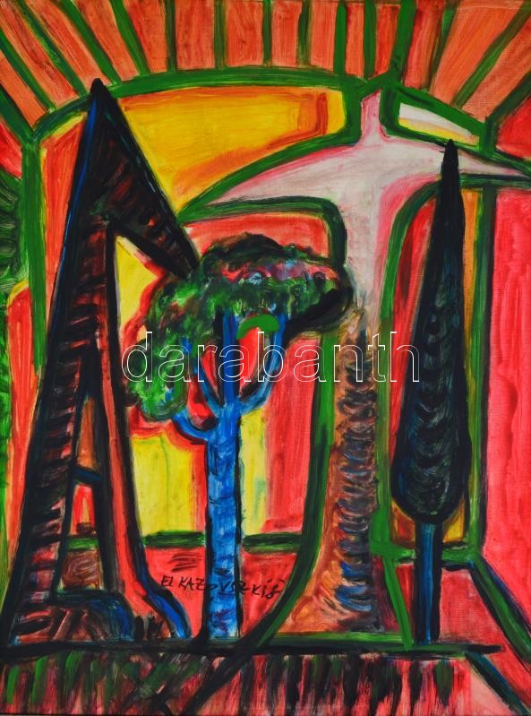Leírás: El Kazovszkij jelzéssel: Kutya tájban, olaj, farost, keretben. 80x60 cm