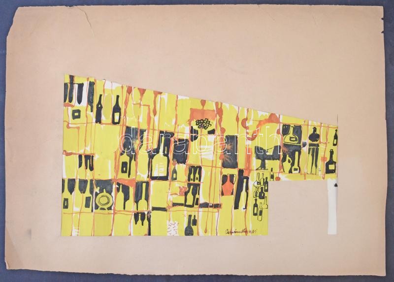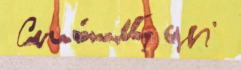 Leírás: Gyarmathy jelzéssel: Absztrakt kompozíció. Akvarell, papír, szakadt papír paszpartuban, ca. 25x43,5 cm