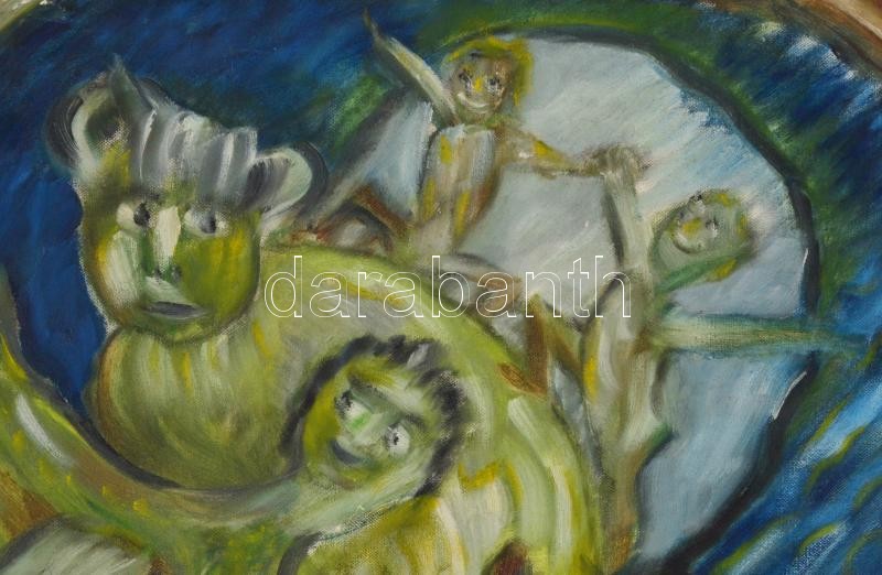 Leírás: Ludwig Agyik (?-): Alakok (vázlat). Olaj, vászon, jelzett (a hátoldalán is), fa keretben, 40x48 cm