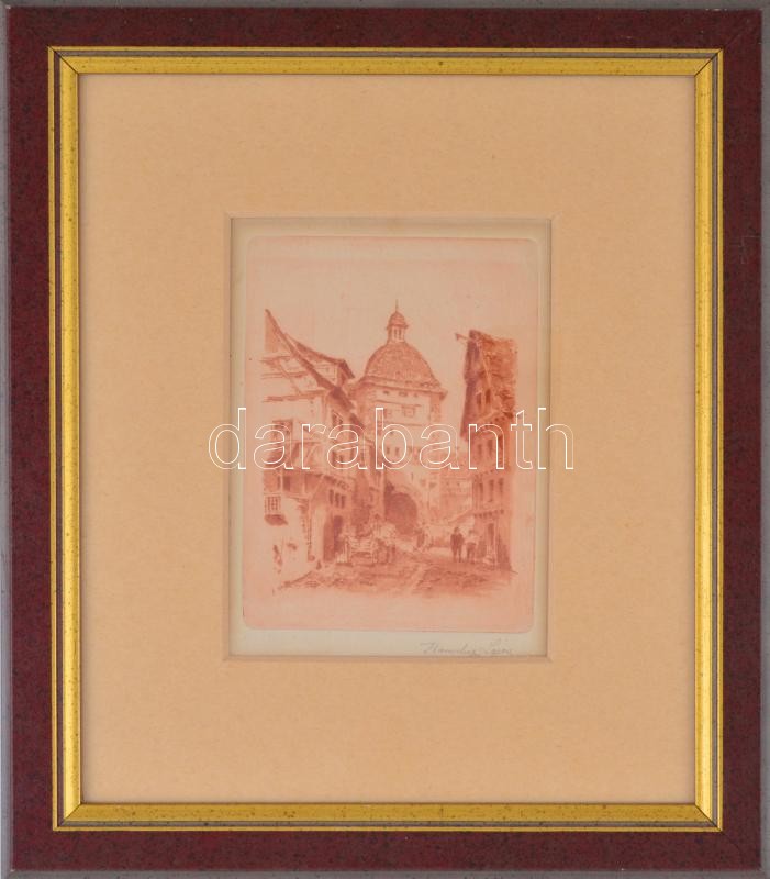 Leírás: Rauscher Lajos (1845 - 1914): Sopron. Rézkarc, papír. Jelzett. 17x12 cm Üvegezett keretben.