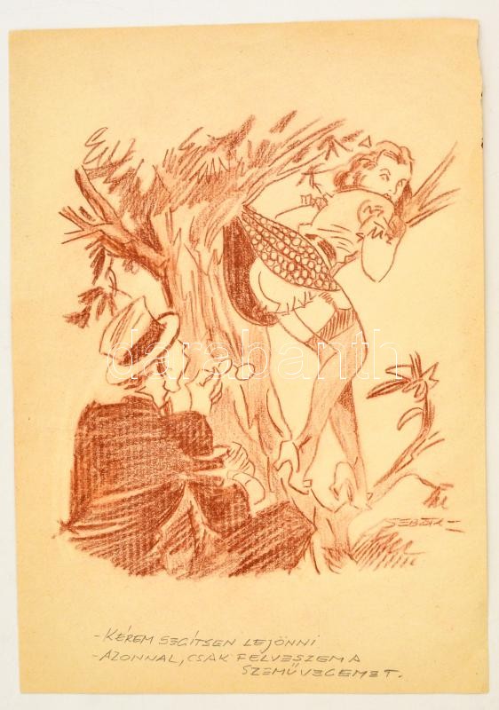 Leírás: Sebők jelzéssel: Kérem segítsen.. Kréta, papír, jelzett, 21×18 cm
